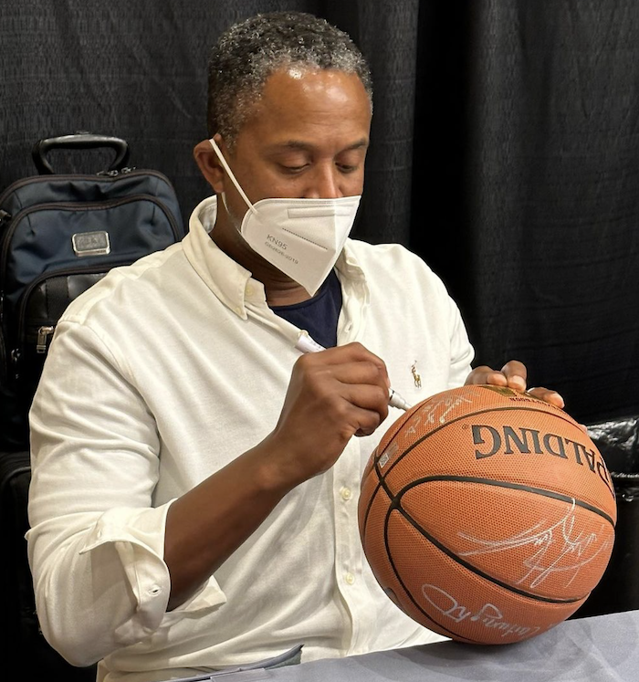 - Via @jeffowens_jeff … @Fanatics CEO @michaelrubin working the show floor with #NBA great @JalenRose at the @nsccshow #nscc23 #thehobby