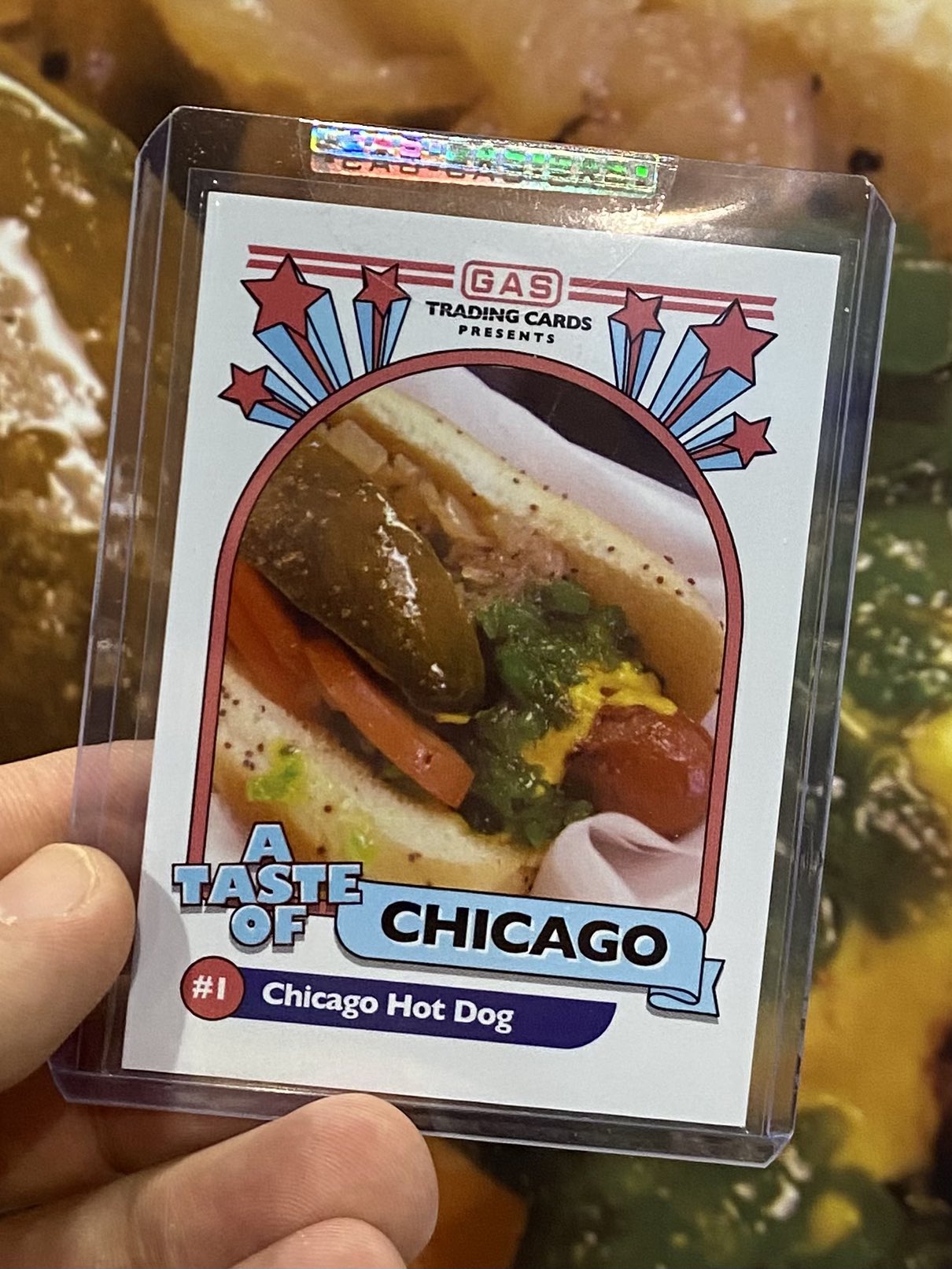- Via @GasTradingCards … It’s here @nsccshow Day 1- A Taste Of Chicago National Exclusive promo “Chicago Hot Dog” Available now at GAS booth 3210!