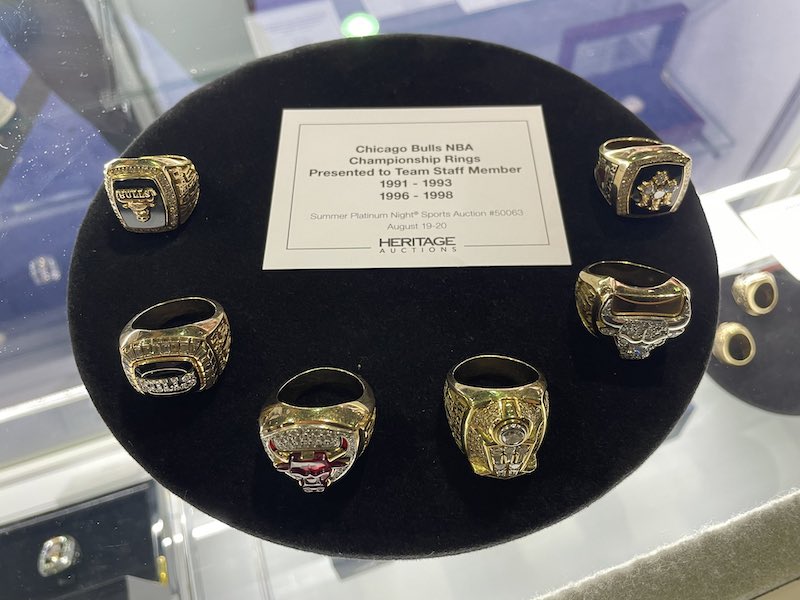 - Via @Heritage_Sport … Rings from all six Bulls Championships on display at our booth at the @nsccshow consigned by a team staff member. Come see some hardwood history at our booth