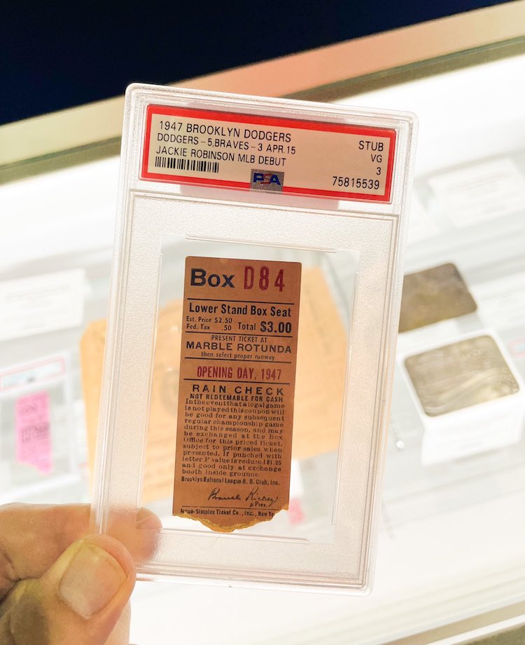 - Via @Heritage_Sport … It’s the most significant moment in American sports history, Jackie Robinson’s MLB debut, and this ticket is the finest known example to that momentous occasion, pop one none higher. Come by our booth at the @nsccshow and see it in person.