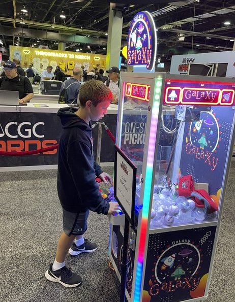 - Via @roroweber1 … My son enjoying the @CGCCards arcade setup for the second year in a row at #NSCC23 . He won a cool hat in the claw game! Happy kid & it’s his birthday so even better. 🎂