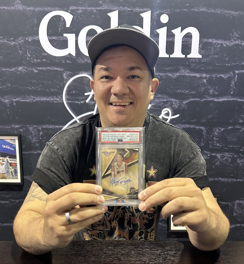 - Via @GoldinCo … Kim stopped by our booth to see the Wemby card he won in a break! Thanks for visiting! Come check out the card at Booth 757! @nsccshow #NSCC23