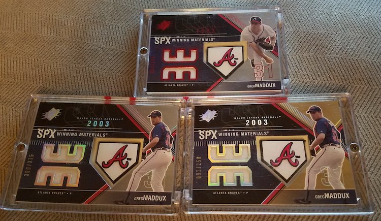- Via @CommunityGum … First purchase of the day. I don’t normally stop at $5 boxes first, but I noticed a Maddux relic sitting on top with a cool embedded homeplate piece, so I searched and found 3 different versions. #NSCC21