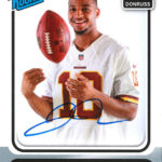 This inclusion in the promo packs are the Rated Rookie autographs that feature photos taken at the NFLPA Rookie Premiere and then signed the following day.