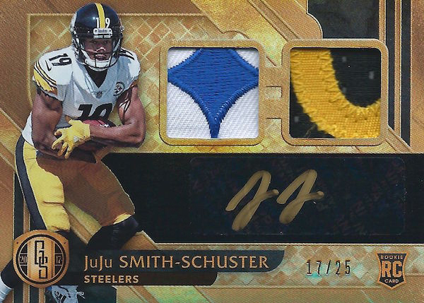 -- JuJu Smith-Schuster It seems like the Steelers can scorch the stat sheet no matter what they do -- see this guy's QB's stats and the score for examples -- and nobody caught more passes on Sunday than this guy, who is quickly becoming the team's top receiver. He had 13 catches for 189 yards and a touchdown in a loss to the Broncos. His Rookie Cards and first autos found in last year's boxes should continue to pick up steam. >> Check out his autos on eBay