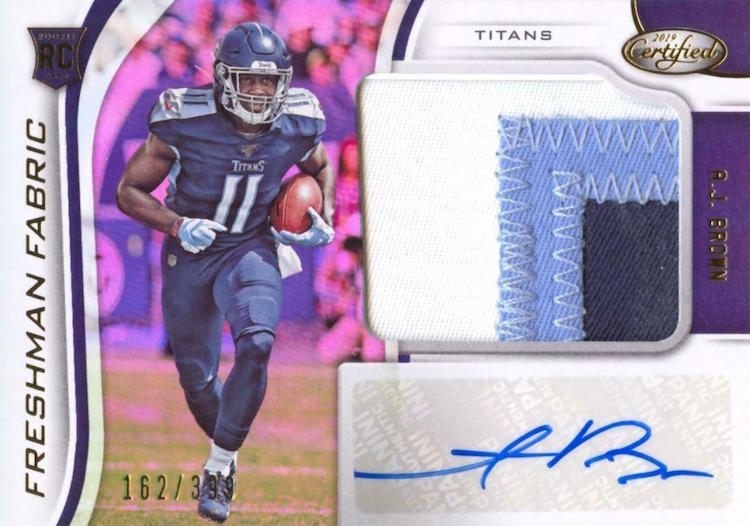 -- A.J. Brown, WR, Titans Three catches for 94 yards and two touchdowns. It's a simple stat line, but a big one as it was key to a 24-10 win over the Falcons on Sunday. This second-round pick out of Ole Miss hadn't scored before this game this season but did have a 100-yard day in the opener. He's already got more than 1,100 cards this year and more than 700 different autographs -- so there's plenty to choose from if you want to chase this rookie. The Titans have looked a bit better at times this year so all of them are probably overlooked, especially their past Heisman winners. This rookie may get more attention than them, but they could all be decent pick-ups.