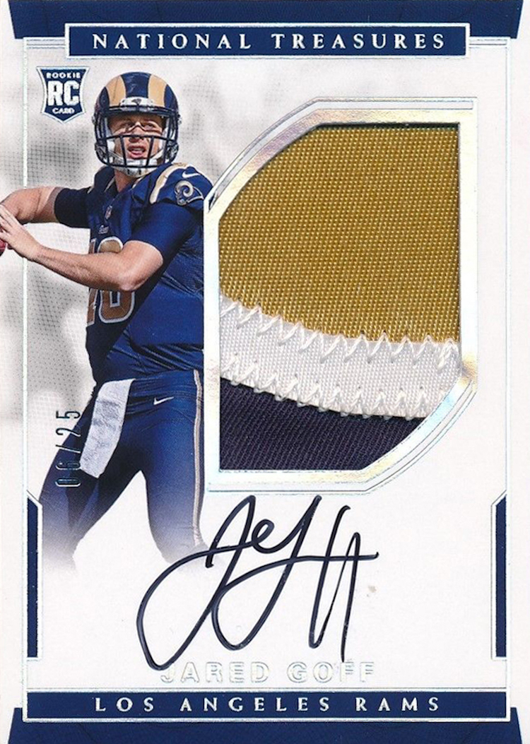 -- Jared Goff, QB, Rams How can you throw for 517 yards and two TDs and lose? That's the NFL these days but it's QBs like this guy who command a lot of attention on cardboard. He's one of several key 2016 RCs who have big-money cards and a ton of readily available cheaper cardboard, too. A 500-yard game has only happened 23 times in NFL history and Goff's game checked in at a tie for eighth-best ever. (The record is 554, by the way, and it's stood since 1951.)