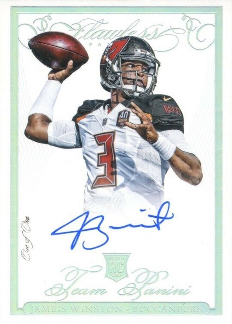 -- Jameis Winston, QB, Bucs It seems like it's been some time since this guy has been seen here but he completed 28 of 41 passes for 385 yards and four TDs as his team put up 55 points in a win over the Rams. Not sure I saw that coming but his stats have bee pretty strong the last two weeks. He's already on pace to top last year and also looks like he could set new career-highs if he keeps pace here. His RCs and first autos from way back in 2015 could be bargain material in some cases -- those are the ones I'd watch. He's a free agent after this season so a move to a better team and market might really ignite interest here, too.
