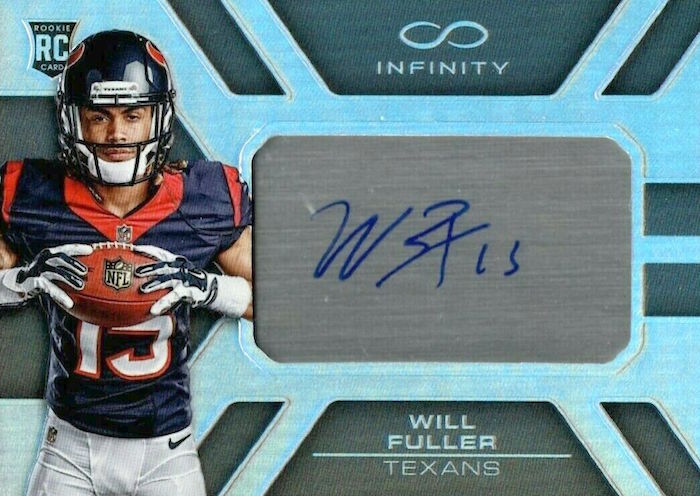 -- Will Fuller V, WR, Texans Want a freakish stat line from Sunday? Fuller caught 14 of 16 passes and didn't even have the best day there -- Chargers RB Austin Ekeler caught 15 of 16. The difference here? Fuller racked up 217 yards and three TDs (while Ekeler had just 86 and never hit paydirt). Before Sunday, Fuller hadn't had a 100-yard game this year or scored a TD. He's had some strong games since he was the 21st-overall pick back in 2016 but might be off the radar compared to even other players on his team. There should be some bargains out there for his cards if you want to chase them down.