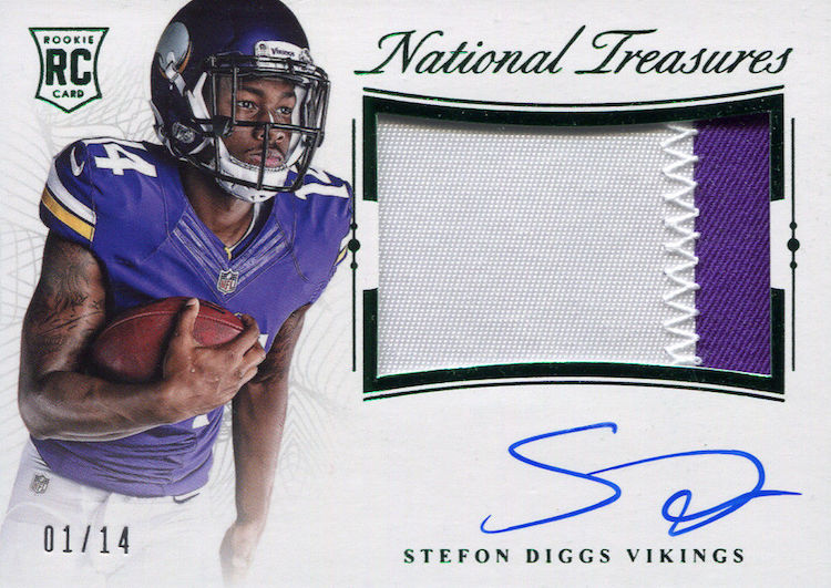 -- Stefon Diggs, WR, Vikings Nobody had a better receiving day than this veteran -- a guy whose RCs are way back in 2015 -- who caught seven passes for 167 yards and three TDs in a 38-20 win over the Eagles. He's a homegrown talent so all those RCs show him in the right colors for Vikings fans and in my mind that makes him much more of a cardboard target than his QB who has seemingly underachieved this season after putting up big numbers with some career-highs last year. Diggs had a career year last year and is roughly on pace to do the same this year after yesterday's big game. He had only had one TD and one 100-yard game this season before yesterday's break-out.