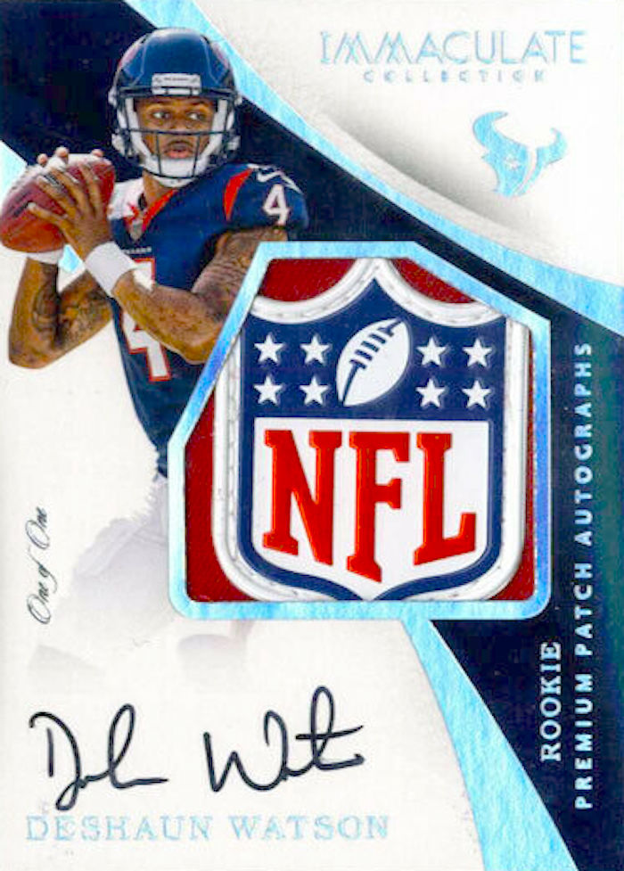 -- Deshaun Watson, QB, Texans There was a big showdown on Sunday when the NFL's newest big deal, Patrick Mahomes, took on one of the league's previous big deals in this guy -- and this guy's team won. Watson completed 30 of 42 passes for 280 yards and a TD but added 10 carries for 42 and two more TDs in the 31-24 win. Watson has 12 TDs and 1,644 passing yards this year but a win over the Chiefs might top any of those highlights in the minds of some collectors. Watson's 2017 Rookie Cards are probably worth a look back as he's been playing well -- but not all that consistently on the stat sheet -- this season.