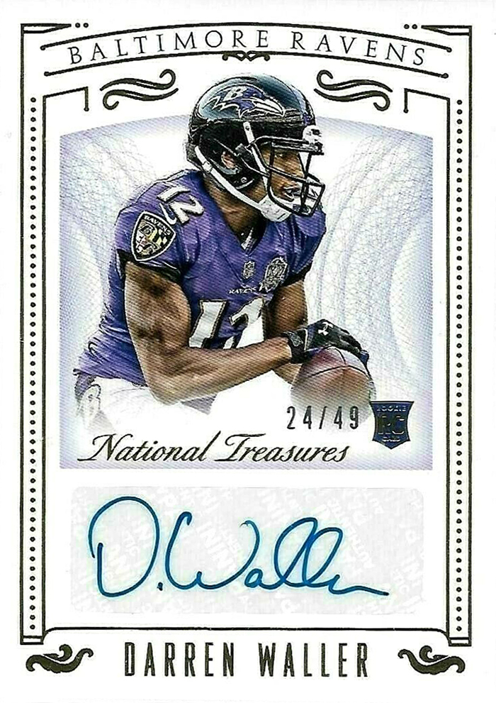 -- Darren Waller, TE, Raiders This sixth-round pick back in 2015 had a career day Sunday in his team's loss to the Packers with seven catches for 126 yards and two TDs. The scores were his first of the year for a team that has shed its Antonio Brown drama enough to sit in second place in its division (albeit at 3-3). He's played just 28 games as a pro with 62 catches for 663 yards and just four TDs. Do the math and you'll see how big yesterday was for him -- and he's had a pretty solid season with 44 catches for 485 yards so far. There's probably not big money to be found with his cards but they are worth a look on the cheap side for the short-term and his team seems sold so maybe for a longer hold depending on how it works out. Check out more about his story here.