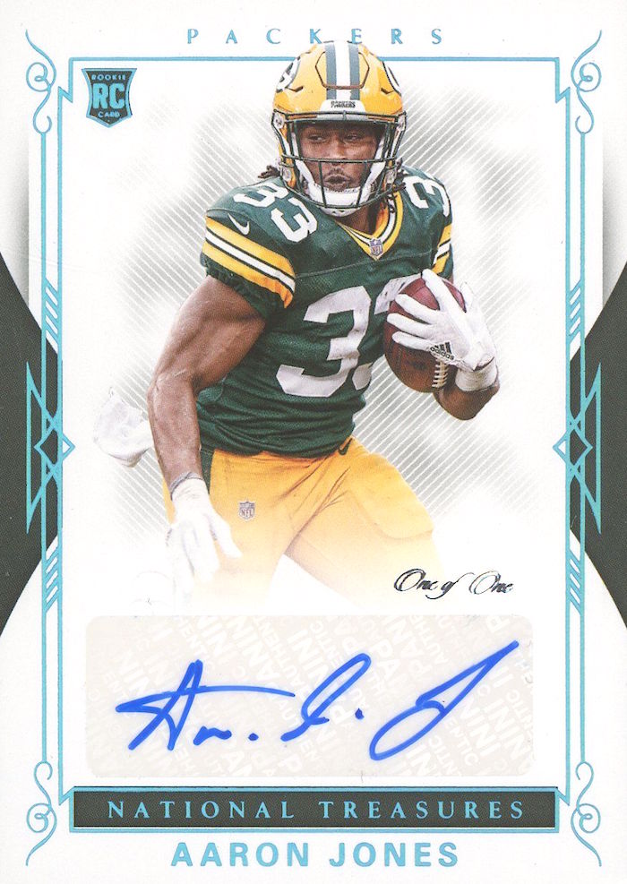 -- Aaron Jones Remember this guy? The Packers' second-year RB had his third 100-yard outburst of his NFL career in Sunday with this one being his best of them all -- he had 15 carries for 145 yards and two touchdowns in a win over the Dolphins. He's got four TDs this season so it's not been a silent campaign, but a day like this one can start to change that and get more attention for his cards. The Cheeseheads fan base is strong so there's bound to be demand here no matter what, but he could be a guy where you could pick off some good stuff here and there without breaking the bank. The key is whether you think he'll stick and keep this up. >>> See his autograph cards here