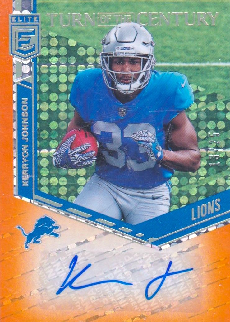 -- Kerryon Johnson This Detroit Lions RB didn't get the score on Sunday against the Dolphins but his 158 yards led the league this week In six games, this rookie out of Auburn has two 100-yard games and the Lions hadn't had a 100-yard rusher in four years when he dropped his first one. His autograph isn't that flashy but that's not a big concern if he establishes himself on cardboard. >> Check out Kerryon Johnson autos on eBay