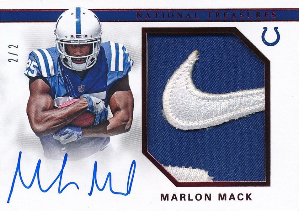 -- Marlon Mack The Colts RB racked up 126 yards and a touchdown on just 19 carries and was one of just three RBs to get to 100 yards this week. He also added two catches for 33 yards and another touchdown -- both his first scores of the year each way. The fourth-round pick from last year has been increasingly better for his team the last three weeks and he'll top his yardage total from last season either this week or next with this pace. I'd be watching his cardboard throughout this and see how it goes. >> Check out Marlon Mack autos on eBay