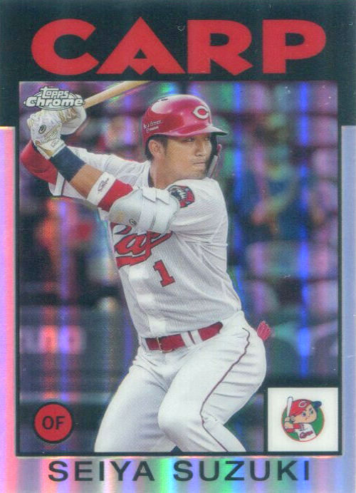 He's got cards in both of Topps' 2021 NPB releases you can easily chase (or cash in on if that's your thing) with 25 in Chrome and 13 in the basic set. He has a base card, a 1986 Topps homage insert and a Prismic Power insert. The 1986 card has a base card and four parallels -- Gold (/50), Orange (/25), Red (/5) and a 1/1 Super -- while the same lineup applies Prismic as well as the third insert set he appears in, Stadium Sluggers. Just like NPB scorcher Roki Sasaki (still in Japan and putting on perfection shows) and his Chromes, the lineup for Suzuki includes a base card and nine Refractors with Purple (/299), Aqua (/199), Blue (/150), Green (/99), Gold (/50), Orange (/25), Red (/5) and a 1/1 Superfractor to be found.