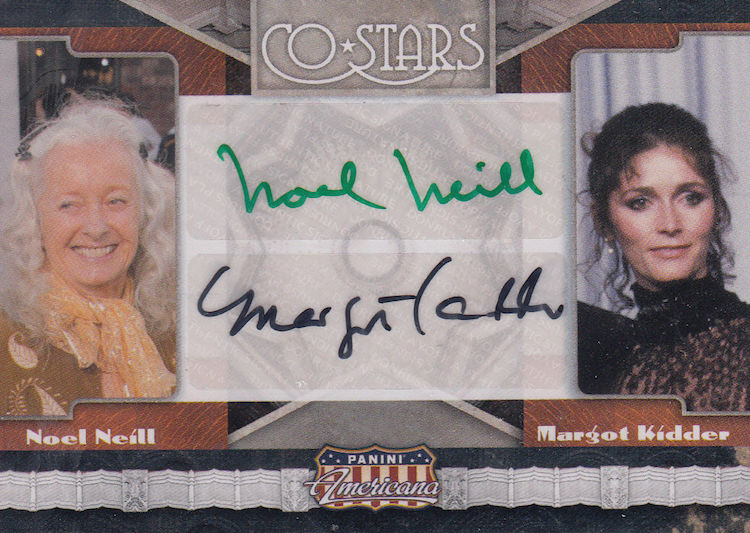 The largest volume of autographed cards for Kidder came with the arrival of what is now Panini America's Donruss Americana brands in 2008, though she signed just 451 total cards across two products, Americana II and Americana Celebrity Cuts. After that Leaf Trading Cards added her to the fold with a handful of cards in 2010 Pop Century and she then had autographs in 2011 In The Game Canadiana and had a small number of cards in Pop Century and Americana that year. Her final certified autos came in a Smallville set in 2012 -- the Seasons 7-10 release from Cryptozoic.