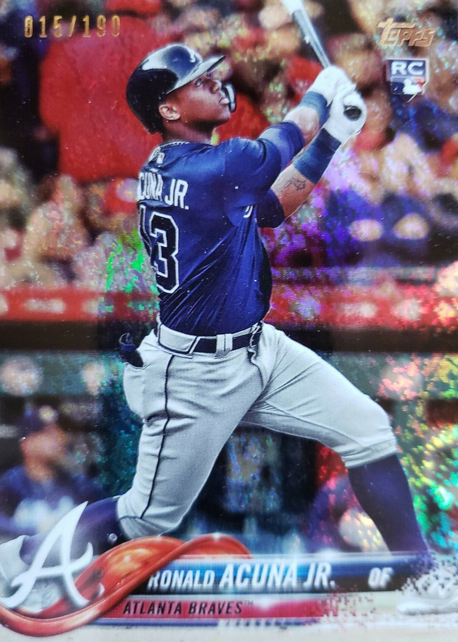 Ronald Acuña Jr. torched the San Francisco Giants pitchers Monday night with a homer on the first pitch of the game, then a double and another homer -- the kind of night that gets people looking even more for the cardboard from a few key sets last year that include his Rookie Cards.