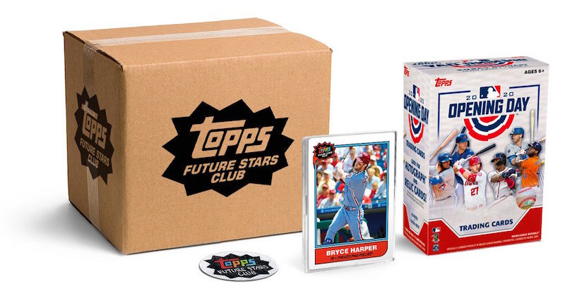 For $24.99 a month, members will get a box that includes one box of Topps cards, one five-card set and one other type of "collectible item" -- this month's being a patch -- that's "curated by Bryce Harper." The box for the first package is a 2020 Topps Opening Day blaster.