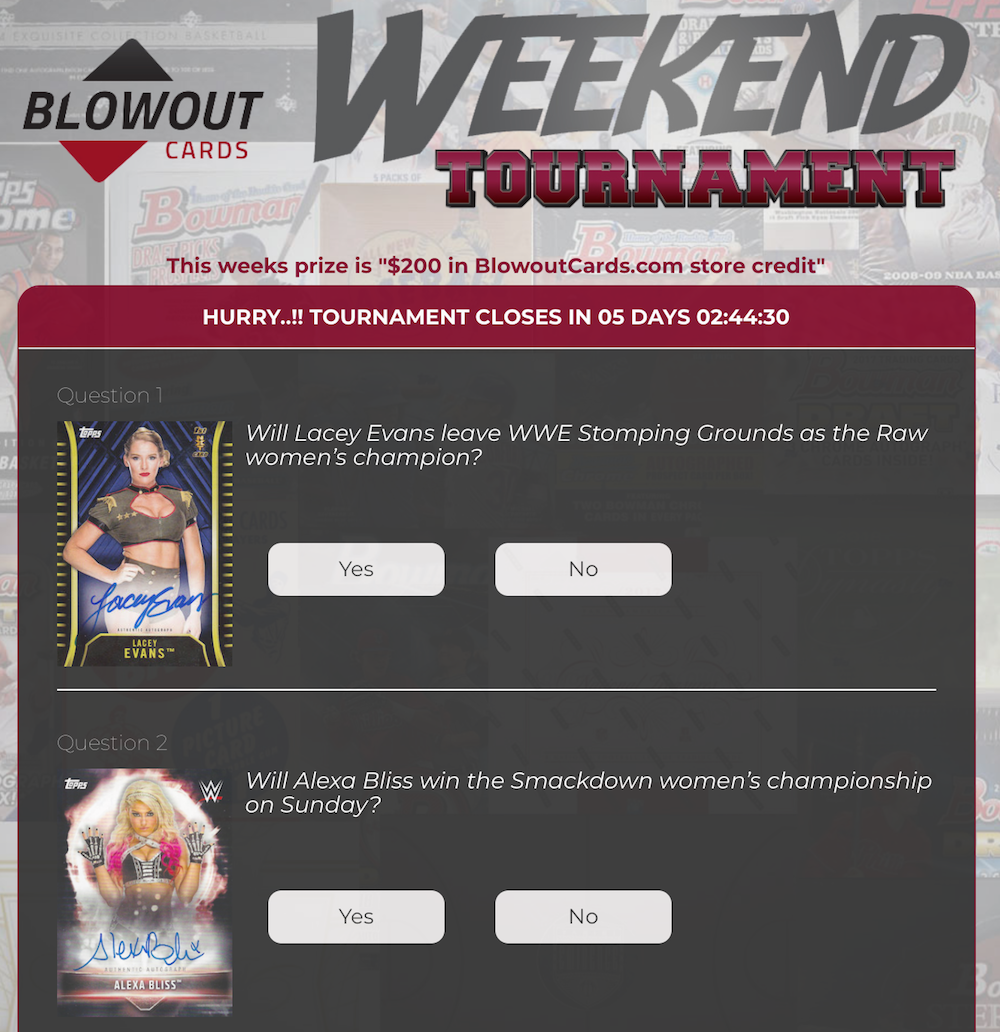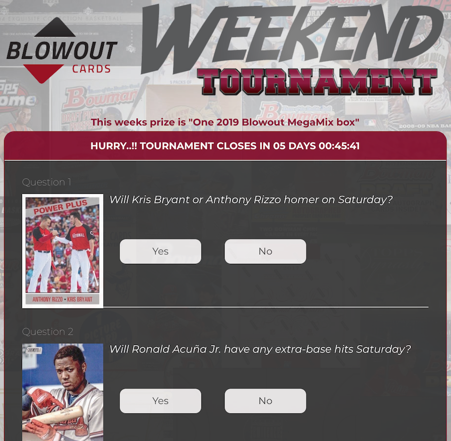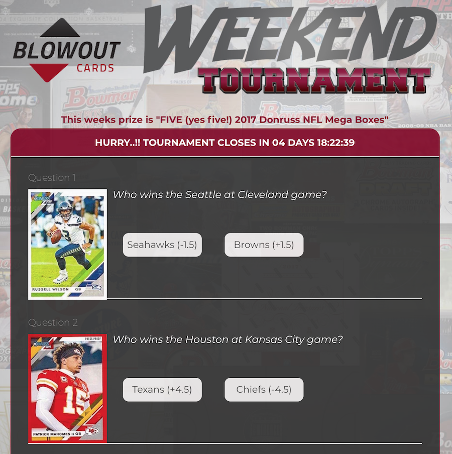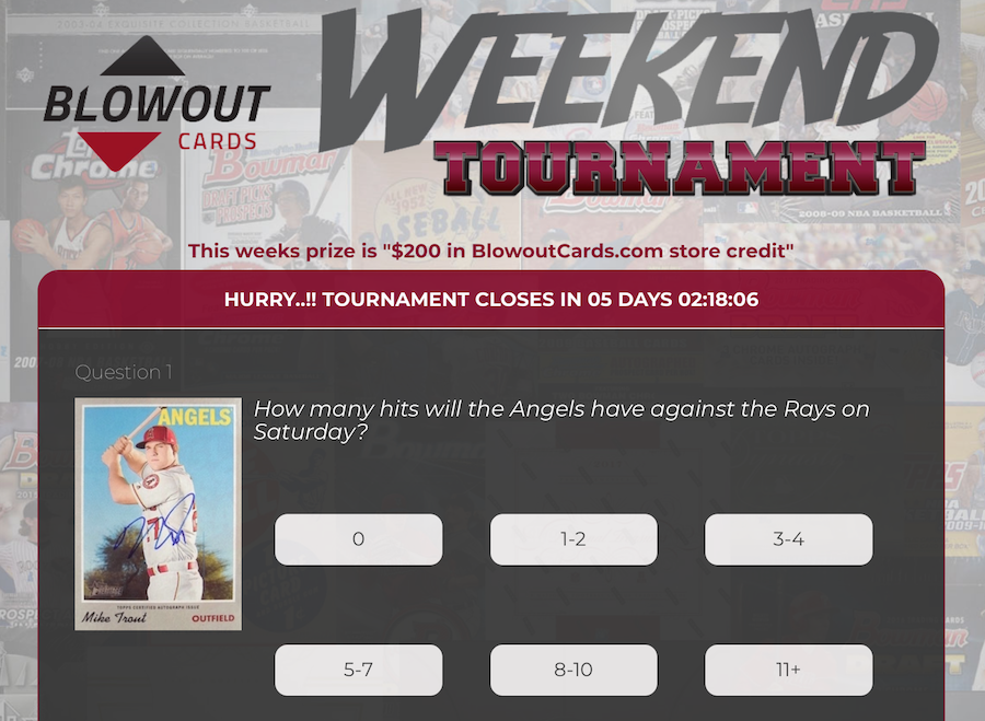 Blowout Cards' hot spot for your shot at free stuff -- store credit, boxes, memorabilia and other prizes -- is in its 22nd week and the prize is $200 in Blowout store credit. And, again, nobody has been perfect in the history of the event ... will you be the first?