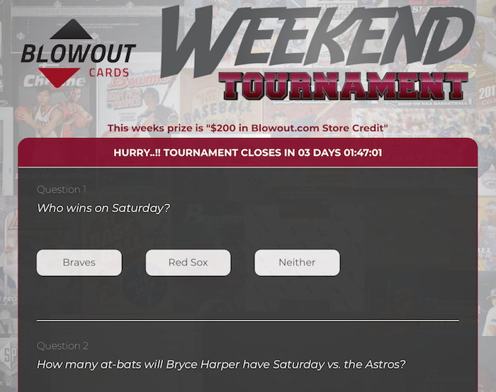 Blowout Cards' hot spot for your shot at free stuff -- store credit, boxes, memorabilia and other prizes -- is in its 16th week and the prize once again is $200 in Blowout store credit.