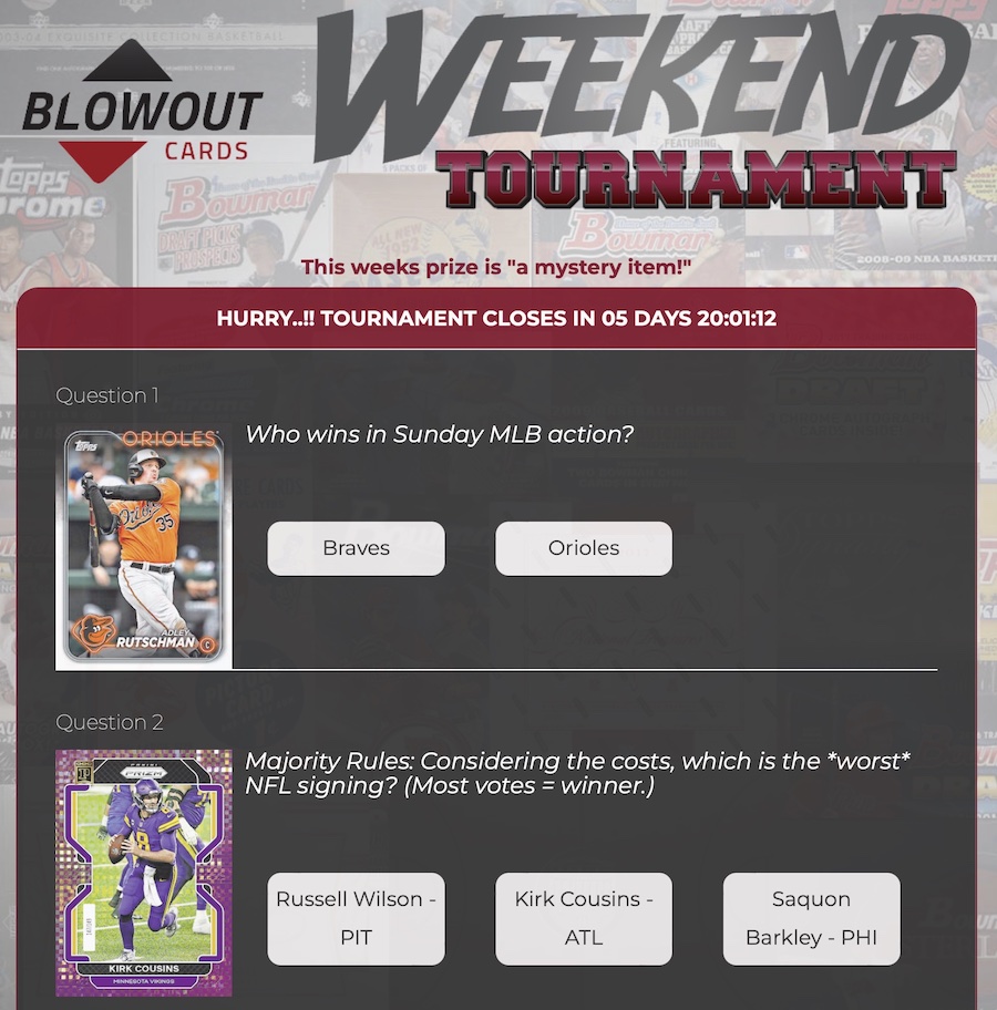 Did you get in on last week's action? Check the leaderboard and contact fish@blowoutcards.com to claim your prize if you're the winner.