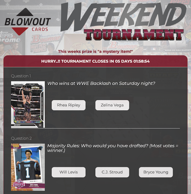 Follow Buzz on Twitter @BlowoutBuzz or send email to BlowoutBuzz@blowoutcards.com.
