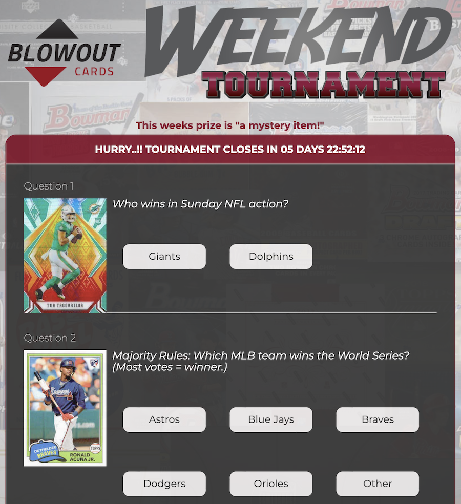 Did you get in on last week's action? Check the leaderboard and contact fish@blowoutcards.com to claim your prize if you're the winner.