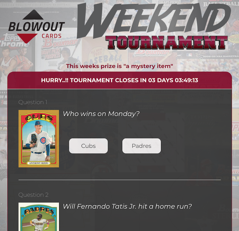 Did you get in on last week's action? Check the leaderboard and contact fish@blowoutcards.com to claim your prize if you're the winner.
