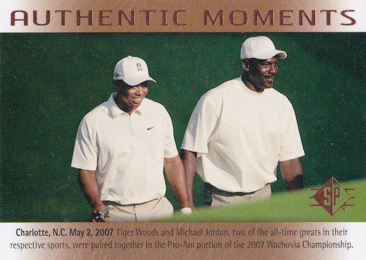 Why they're Buzz-worthy: With Jordan maintaining an exclusive card deal with Upper Deck and Panini America having exclusive NBA rights for a decade now, new MJ cards have been limited to the golf course or in Goodwin Champions-type multi-sport releases where he's in street clothes or airbrushed images to remove logos. There's still big demand for his autographs (of course) and his ink has even appeared in golf releases alongside Tiger Woods, which he shares cardboard with above (not the only time). There can be solid demand for the unique stuff among the cards in this category -- the card above, for example, sold on eBay for $20.