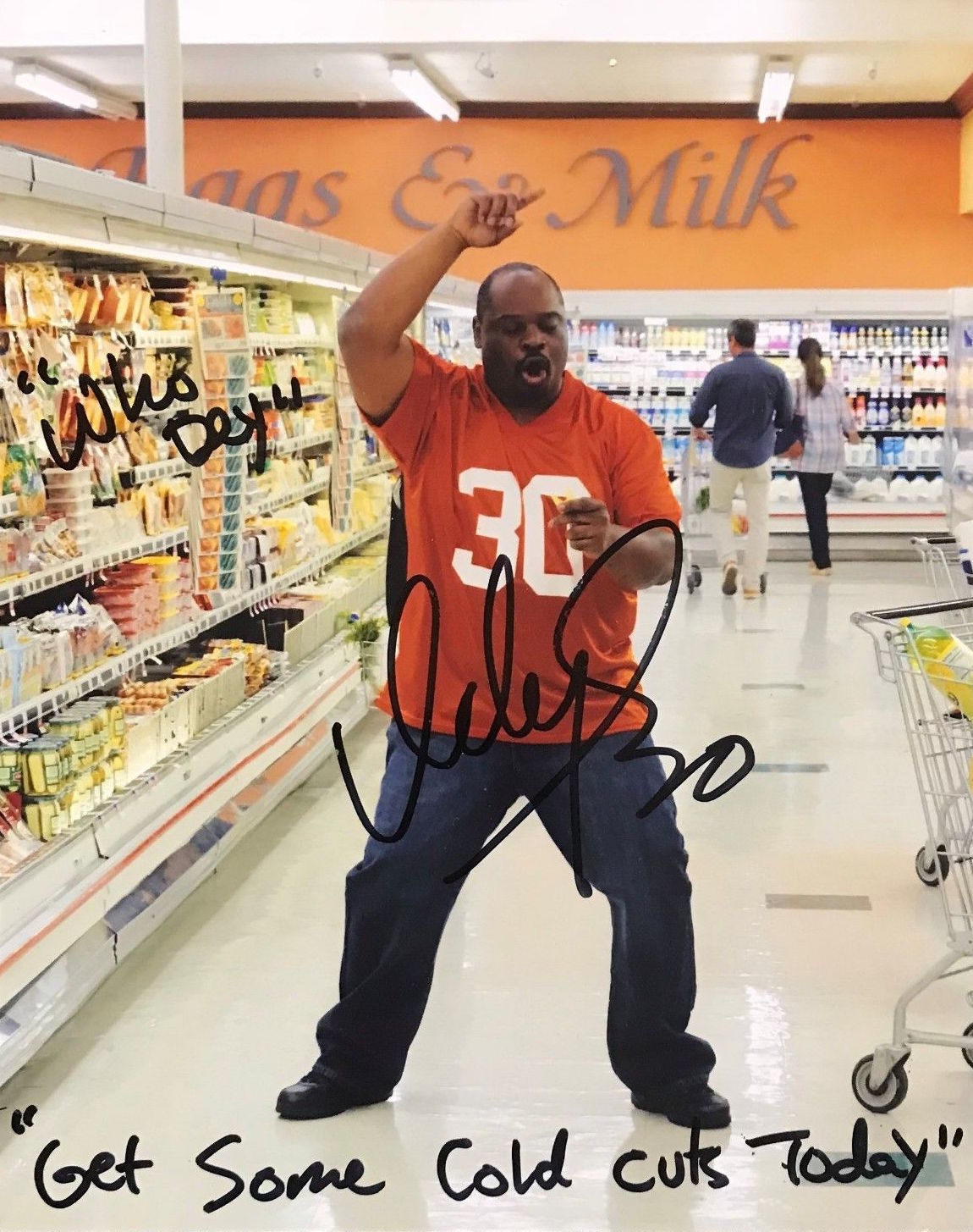 In 1988, this Cincinnati Bengals star ran his way to the Super Bowl as a rookie but the "Ickey Woods Shuffle" didn't happen in the big game, despite it being a close one. He was a 1,000-yard phenom that season with 15 touchdowns and his iconic dance that helped him land on the cover of Sports Illustrated. An injury derailed it all as he was retired by 1991. The photo above comes from his classic Geico commercial where he puts those shuffling skills on display today. He's $29 for any auto with a free inscription -- this one may or may not qualify -- but "Get some cold cuts!" would help make for a unique item if you can replicate it at the show. (Here's a high-res image that just might work to print.) If not, I might go for the SI cover, though that's not nearly as unique.