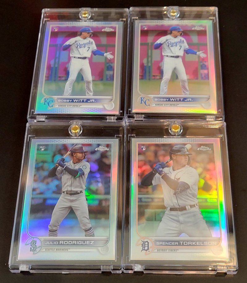 These cards will not be easy pulls within the pack as one breaker found four -- one Rodriguez, one Torkelson and two Witts -- in a total of 116 packs.