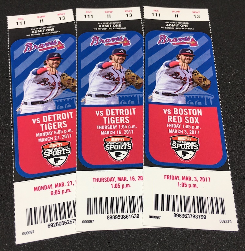 The Events: Three Atlanta Braves spring training games in 2017 -- March 3, March 16, March 27