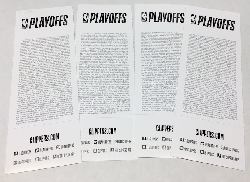 What's Buzz-worthy: These were in a bulk lot I grabbed and aesthetically they're not all that and a bag of chips. If they were a pro wrestler they'd be named El Generico ... except, well, that would be an insult to El Generico. I'm not sure what regular Clippers tickets might look like but other than some matte and spot gloss effects here they're pretty simple. Granted, these were likely prepped for season ticket holders in advance (hence the TBD part and there being two for games never played as the Clippers didn't advance) but still. About the only saving grace here is that the tickets might look decent inked as there's plenty of space for a good sig ... but they wouldn't be for the home team. The Clippers had plenty of guys scoring in double-digits in both games as a depth showcase but these are all about Durant, Curry or Thompson beyond a strong Clippers rookie showing. The Warriors took a 3-1 series lead with these wins and it was over in Game 6, making the blue tickets meaningless. The Warriors went all the way to the NBA Finals and lost to Toronto with their big star joining the Clippers the next year.