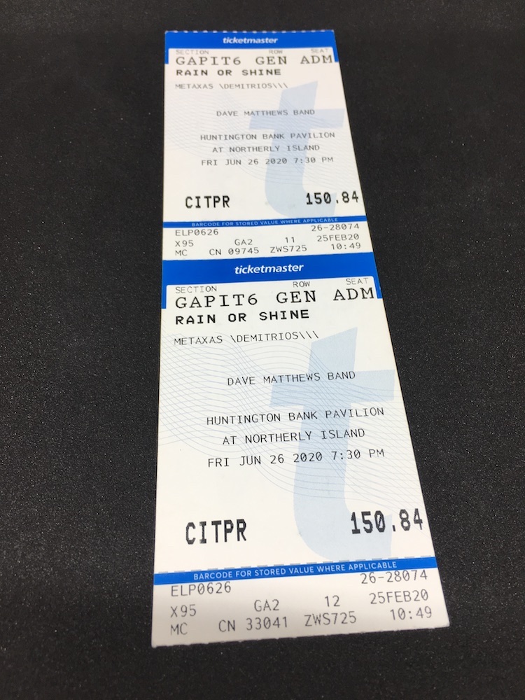 What's Buzz-worthy: This one was an odd surprise in a bulk lot of tickets as music tickets can often be in some demand for either historic events or long-running acts. This one? Definitely a long-running act and the notation of "rain or shine" here rings with sad irony as this show was canceled due to COVID. The band announced all of its shows were postponed for the following year to be rescheduled on May 4, 2020. This was the first of back-to-back shows the band was to do, starting its tour in Connecticut 10 days before these shows and ending that fall. "We make this decision with the health, safety and well-being of our fans, touring crew and venue staff as our priority," read the band's announcement at that time. "We are incredibly grateful for all of our fans who come out to see us every summer and will miss seeing you all. For now, we will keep everyone in our hearts and minds until we can be together again." I can't imagine the history of the band has many canceled shows
