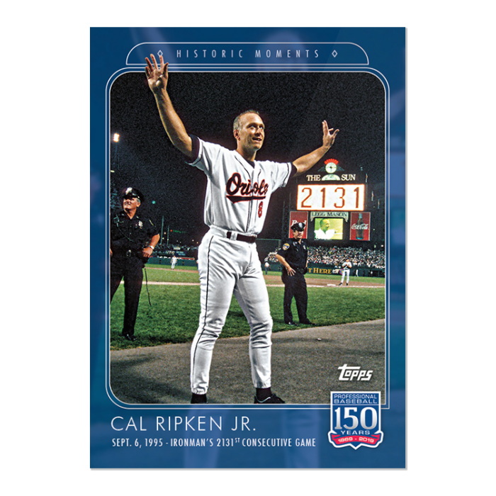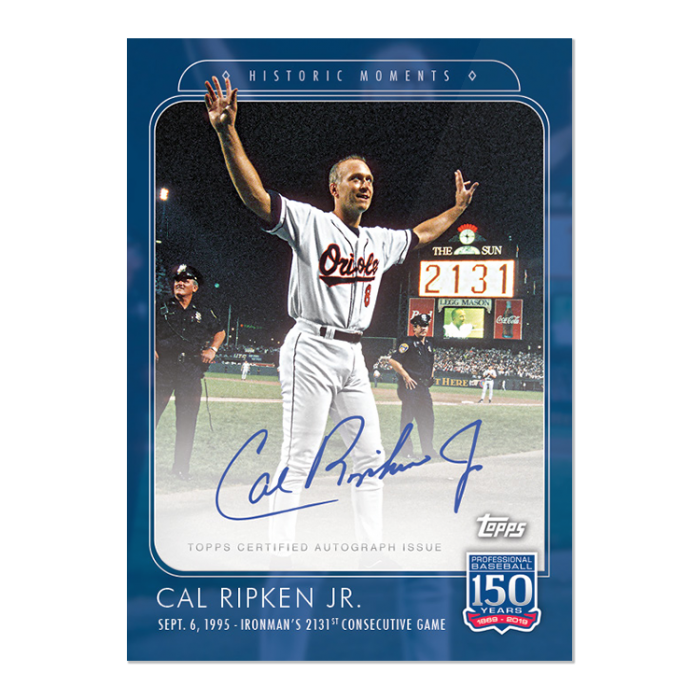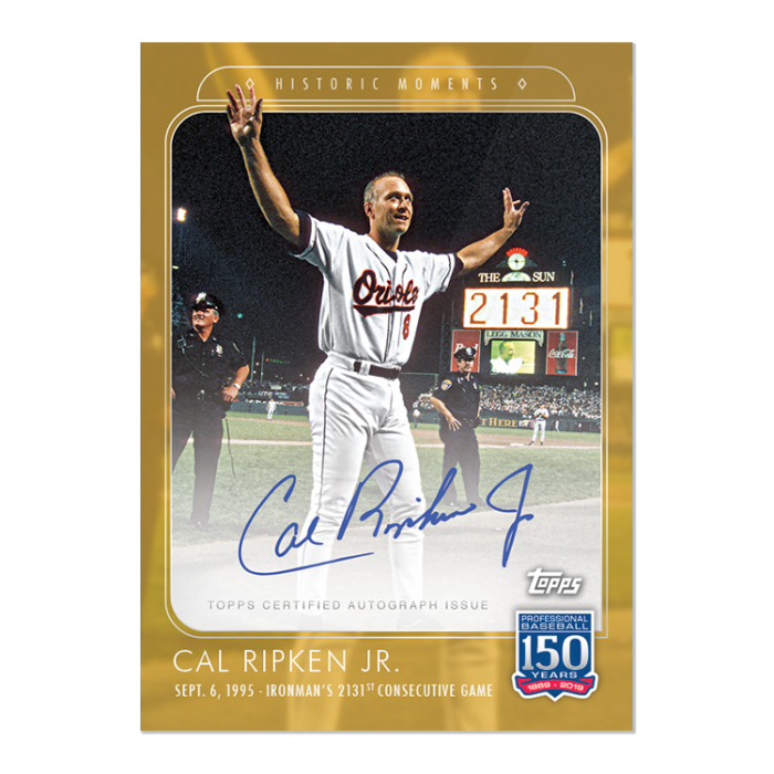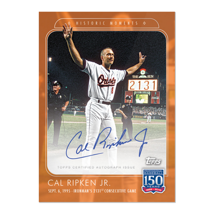 Update (March 19): Topps has introduced autographs into the mix with Cal Ripken Jr. cards leading the way. There are six versions available -- Blue (/99), Green (/49), Purple (/25), Red (/10), Orange (/5) and 1/1 Gold. Prices range from $99.99 to $999.99.