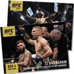 The standard cards for UFC 217 feature St-Pierre, TK Dillashaw and Rose Namajunas and they're all $9.99 or $24.99 via a bundle on Topps.com.