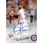 Topps Now update: The autographed American League team sets include one autograph for $199 along with cards for the nine starters and there will be just four signers -- Aaron Judge, Mike Trout, Carlos Correa and George Springer. The National League sets will only have three signers -- Bryce Harper, Charlie Blackmon and Buster Posey in its sets. Autographs will be signed on-card and numbered to 99, 49, 25, 10 and one copy.