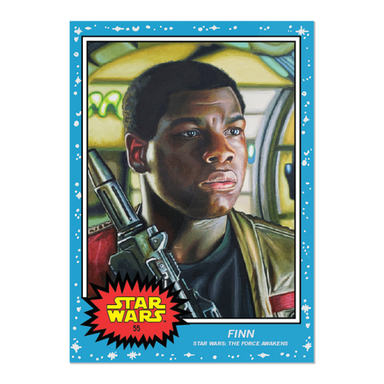 "Topps will only issue one card per character per film, live-action series or animated series," read the announcement of the series, which explains the film title line below their names. "Two new characters will be offered every week."