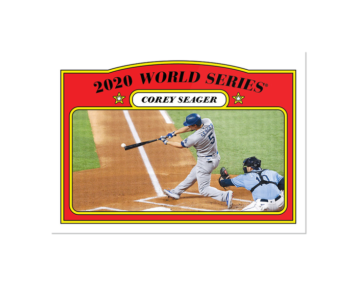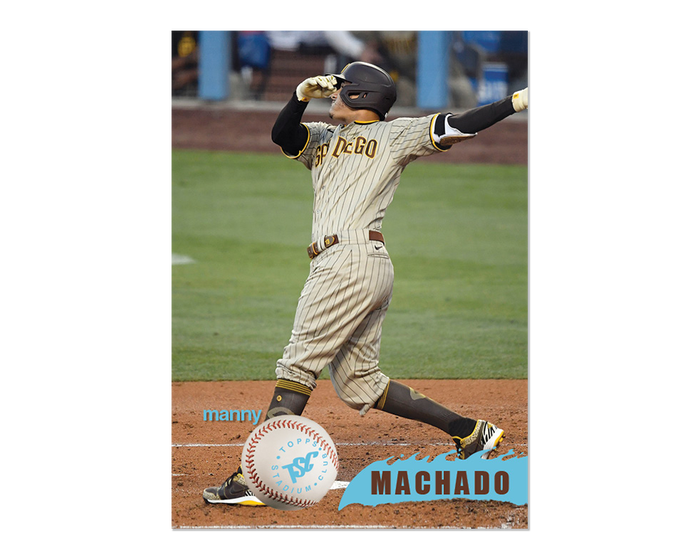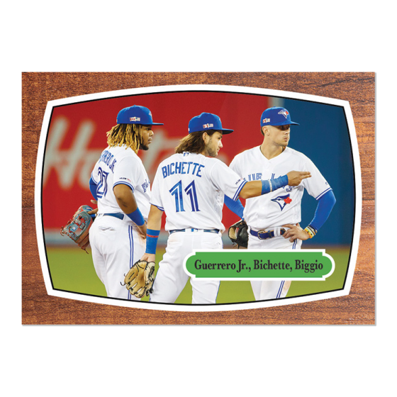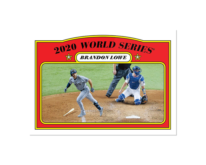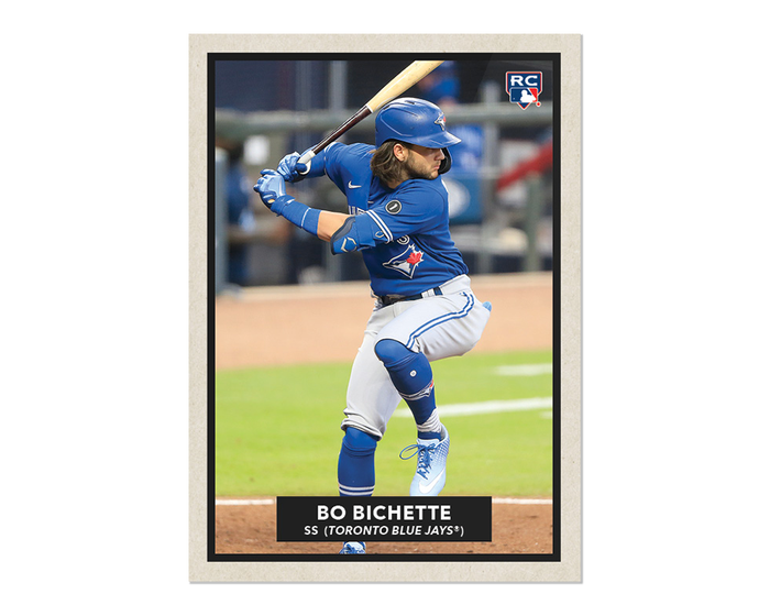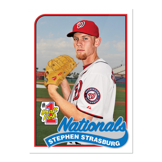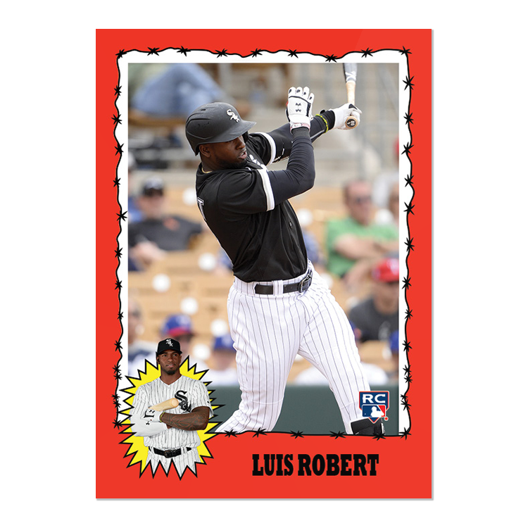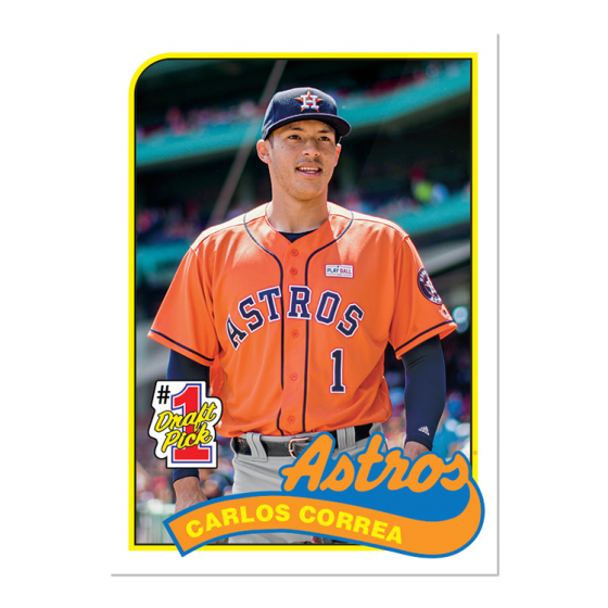 The design for this one is from the 2010 Topps 2020 insert set that offered a fast-forwarded look at the cardboard of today. Those 20 originals were printed on a lenticular-esque plastic stock and were inserts found one in every six hobby packs back in the day.