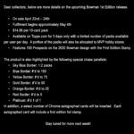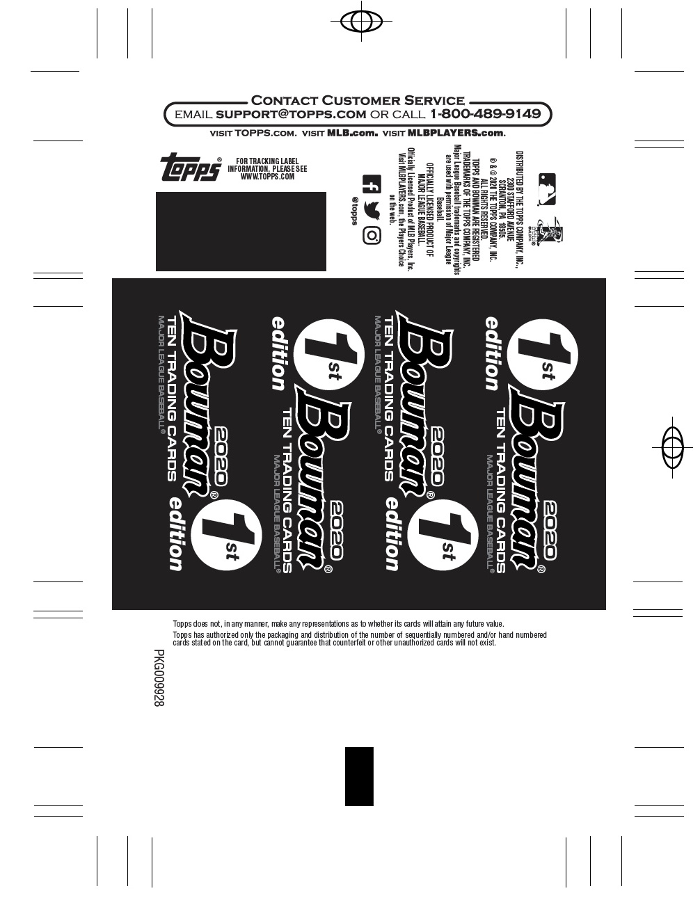 This one will have a non-traditional release, too, with some of its packs sold on Topps.com and some via a few selected Topps dealers. The cards will preview the standard 2020 Bowman release but be found with a First Edition logo -- something that actually was done as a rarer hitless edition of basic Topps and Bowman sets a number of times in the early 2000s. No details on the inclusions were noted for this one ... but we'll have them when they arrive.