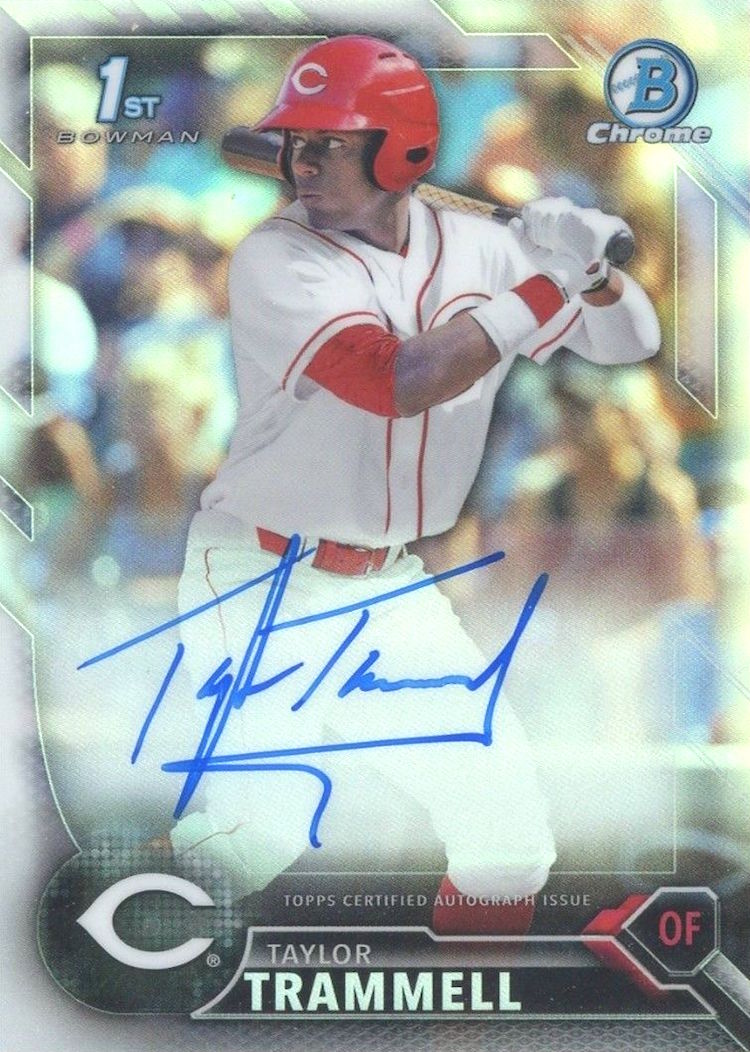 Trammell, who was picked 35th overall in the first round of the 2016 MLB Draft, has nearly 250 different cards and nearly 100 of those are certified auto cards. His first MLB auto is in 2016 Bowman Draft and he also can be found in 2016 Leaf Trinity, Elite Extra Edition and Leaf Metal. In 2017 releases he's found in Bowman's Best and Bowman Chrome. His only ink this year (so far) is in 2018 Topps Pro Debut.