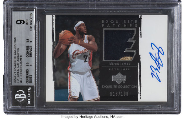 - 2003-04 Exquisite Collection LeBron James (Patches Autographs) #LJ BGS Mint 9-10 — sold for $43,200.