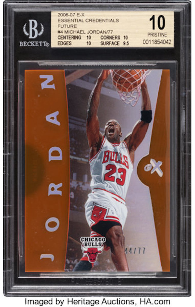 - 2006-07 E-X Michael Jordan Essential Credentials Future #4 BGS 10 — sold for $22,200.