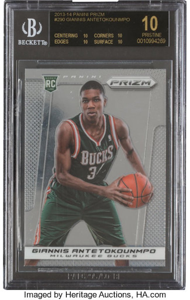 - 2013-14 Panini Prizm Giannis Antetokounmpo #290 BGS Black 10 — sold for $10,800.