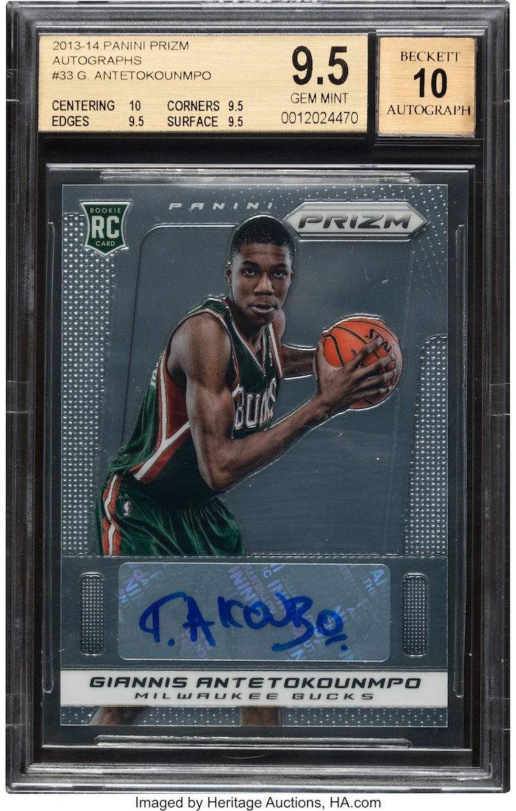 - 2013-14 Panini Prizm Giannis Antetokounmpo #33 BGS 9.5, Auto 10 — sold for $3,960.