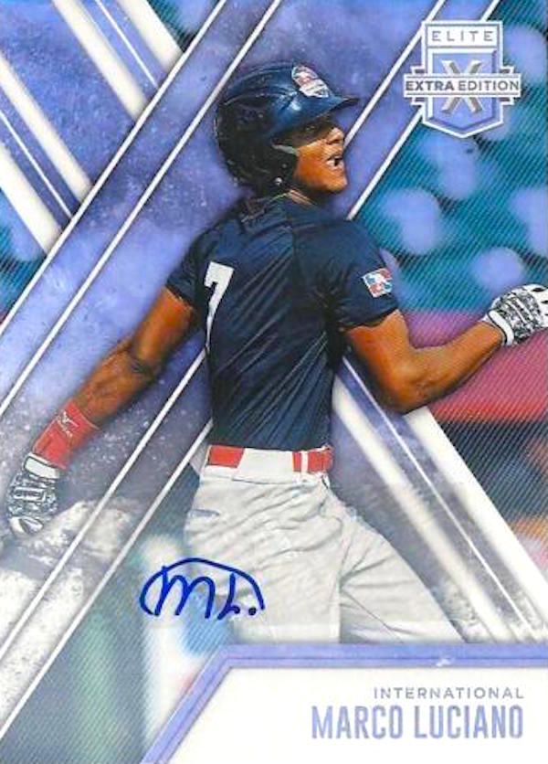 Luciano, 16, ranked second on the Baseball America Top 50 International Prospects list and signed for $2.6 million. He appears on more than 30 cards in Elite and more than 20 of those are certified autographs. One of them is an un-numbered card, while the rest are limited to no more than 100 copies and 15 of those are limited to 25 or less.