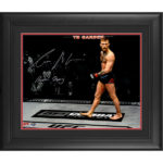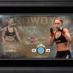 The cheapest items from fight nights are locker room nameplates, which can be had for as little as $49.99. Like in other sports, there are also plenty of framed displays available for showcasing of one's ticket stub from a memorable card or displays featuring a piece of the mat from inside the Octagon just like the Ronda Rousey piece seen here.