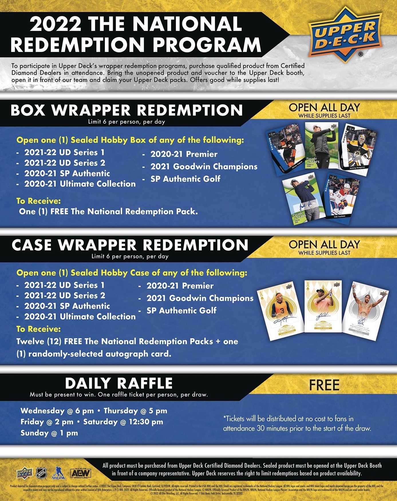 Each day there also will be a raffle for collectors each day as well as a breaking lounge available and a free box break on Friday of the show along with some special announcements. UDA's Monumental boxed-memorabilia release also will be back for this on (while they last).