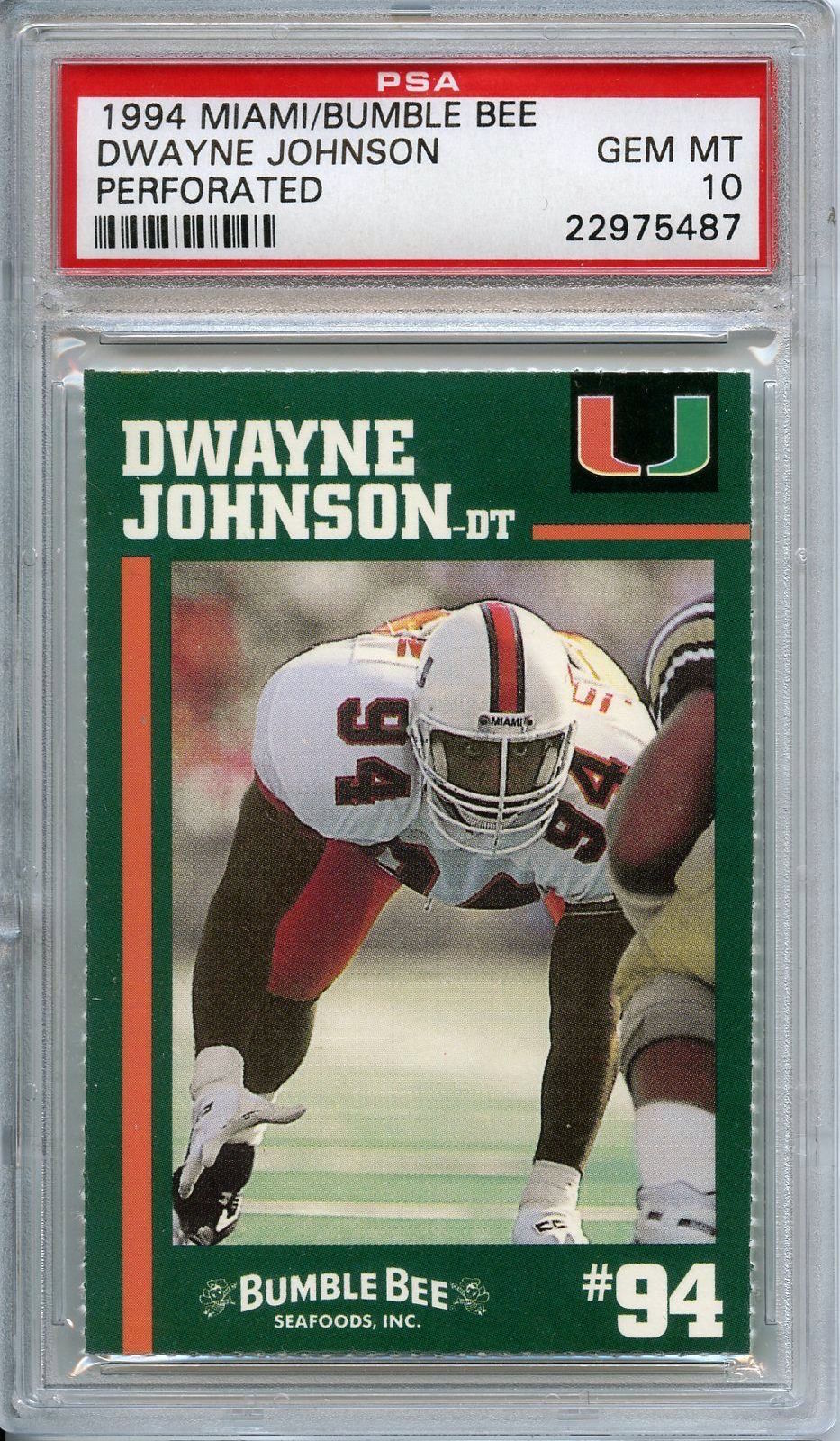 Want a football card of Johnson at The U? There's just one option and it's from 24 years ago. It's a card that was released as part of a perforated team sheet that's believed to be from a stadium giveaway. The copy you see here? It sold for $2,813 back in 2014. The card has only been graded just 79 times by PSA (28 are 10s) and you can actually find them for less right now on eBay thanks to others that have been graded since that big sale. (There were only two PSA 10s back then.)